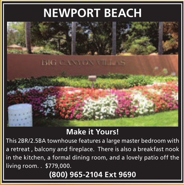 NEWPORT BEACH Make it Yours! This 2BR/2.5BA townhouse features a large master bedroom with a retreat , balcony and fireplace. There is also a breakfast nook in the kitchen, a formal dining room, and a lovely patio off the living room. . $779,000. (800) 965-2104 Ext 9690 See also