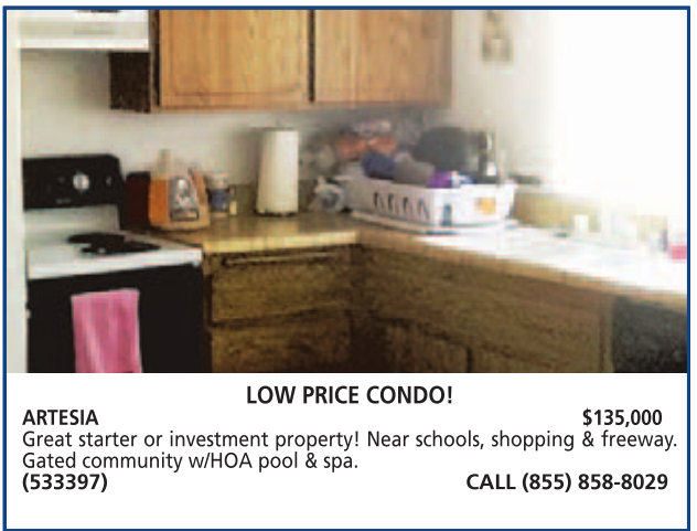 ARTESIA $135,000 Great starter or investment property! Near schools, shopping & freeway. Gated community w/HOA pool & spa. (533397) CALL (855) 858-8029