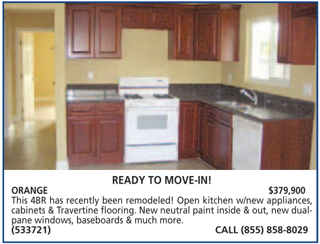 ORANGE $379,900 This 4BR has recently been remodeled! Open kitchen w/new appliances, cabinets & Travertine flooring. New neutral paint inside & out, new dualpane windows, baseboards & much more.