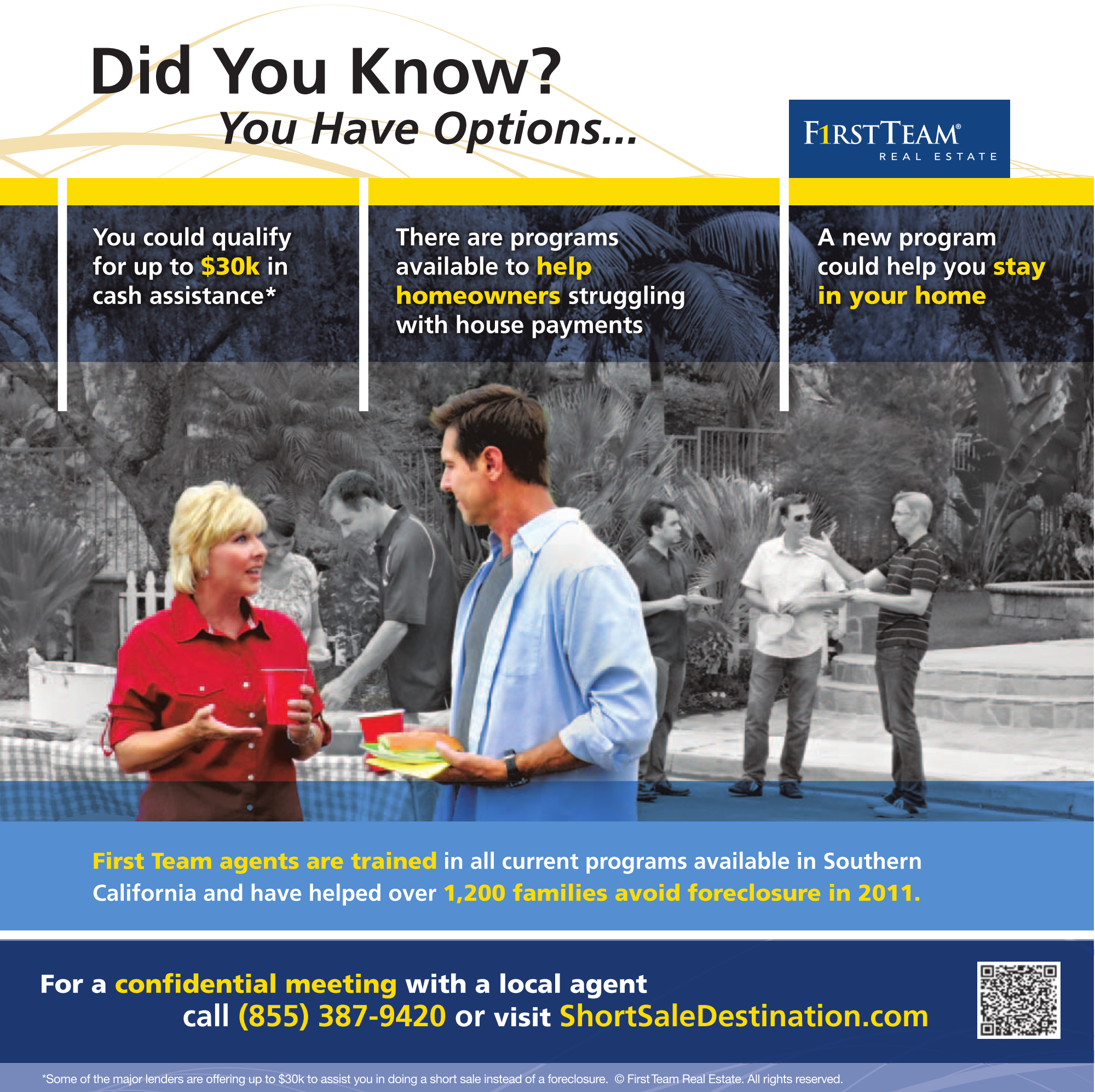 First Team agents are trained in all current programs available in Southern California and have helped over 1,200 families avoid foreclosure in 2011.