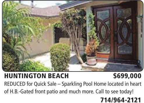 HUNTINGTON BEACH $699,000 REDUCED for Quick Sale – Sparkling Pool Home located in heart of H.B.-Gated front patio and much more. Call to see today!
