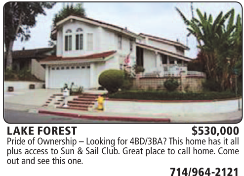 LAKE FOREST $530,000 Pride of Ownership – Looking for 4BD/3BA? This home has it all plus access to Sun & Sail Club. Great place to call home. Come out and see this one.