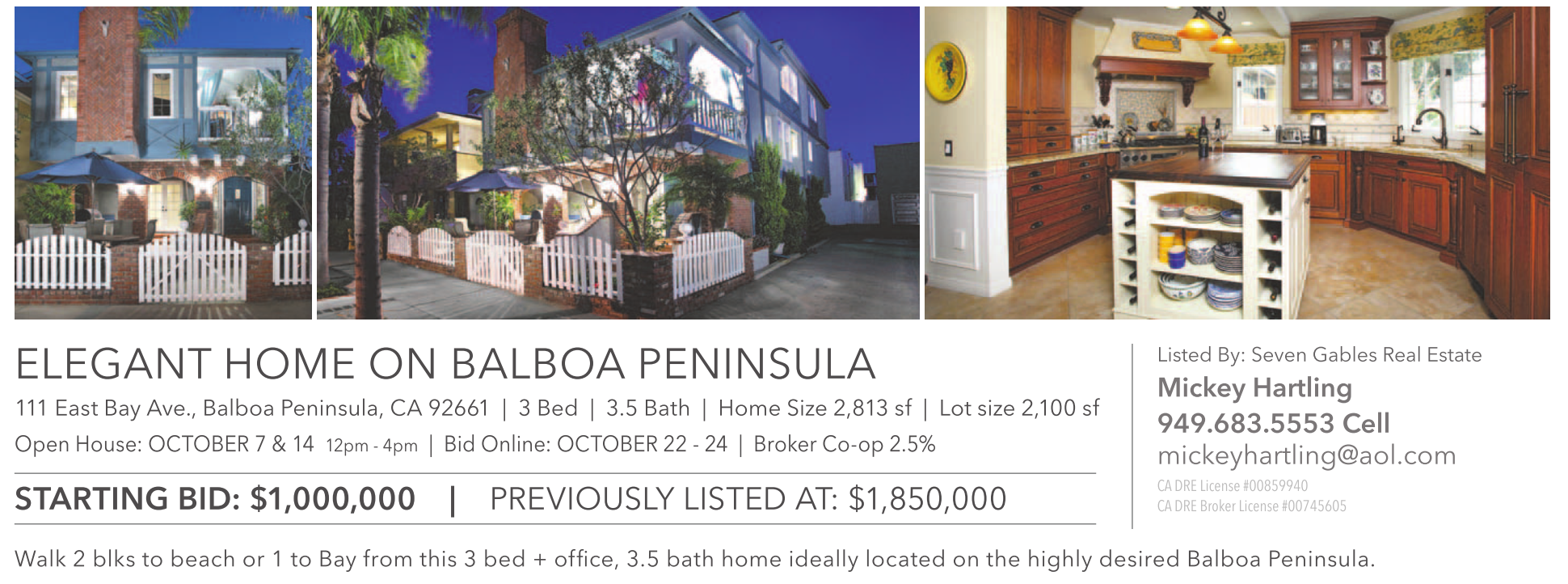 111 East Bay Ave., Balboa Peninsula, CA 92661 | 3 Bed | 3.5 Bath | Home Size 2,813 sf | Lot size 2,100 sf