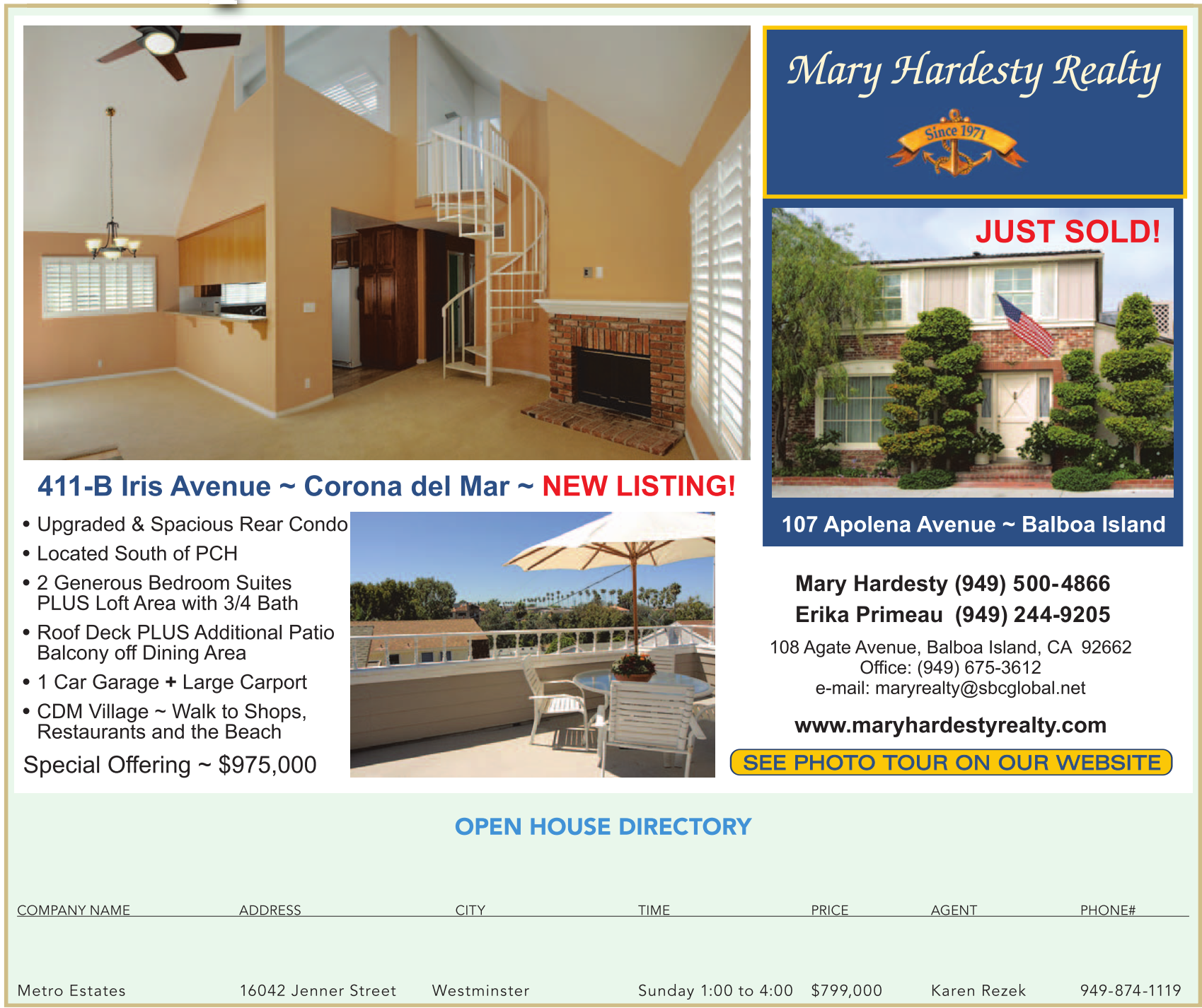 Metro Estates 16042 Jenner Street Westminster Sunday 1:00 to 4:00 $799,000 Karen Rezek 949-874-1119