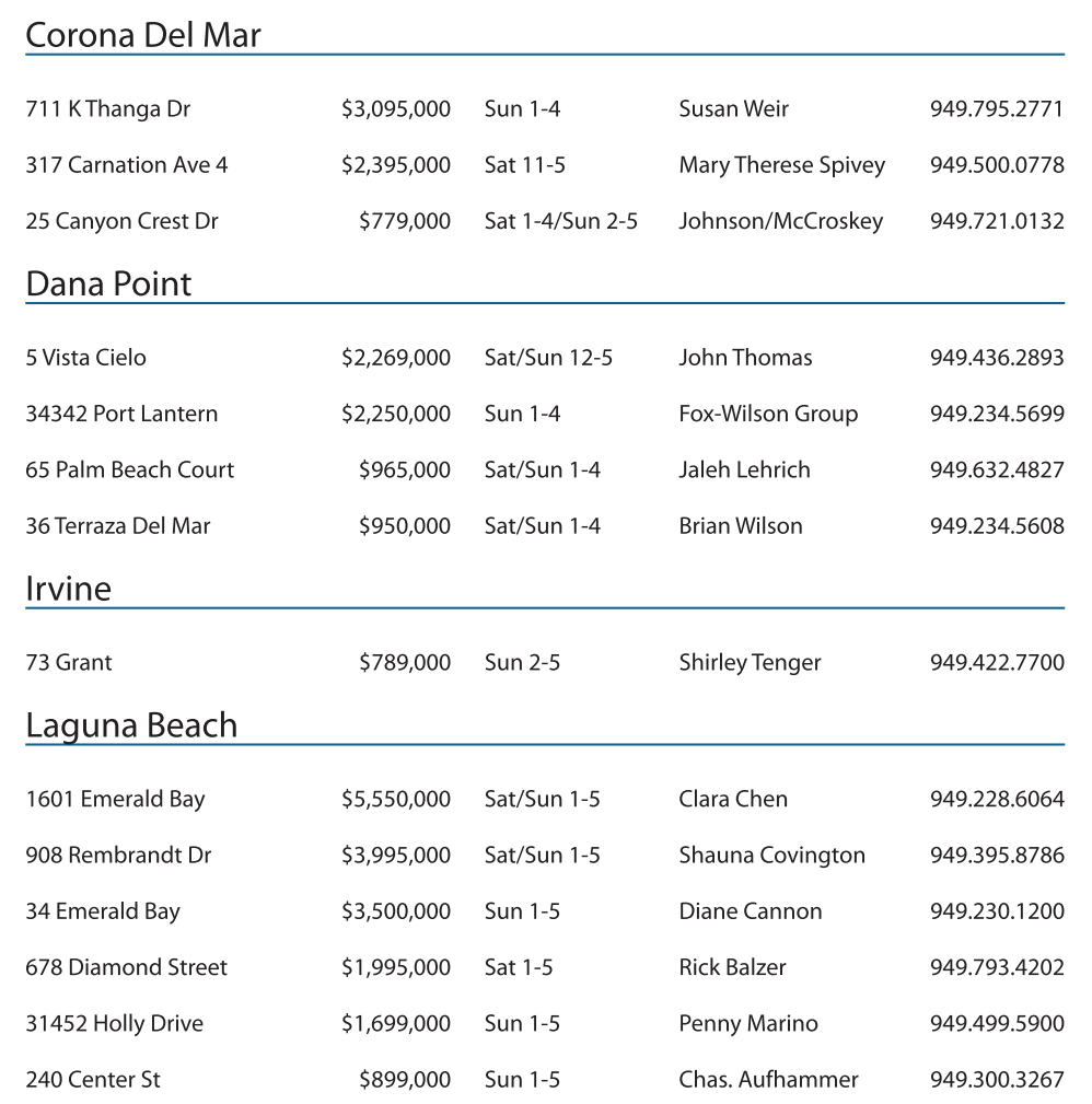 34 Emerald Bay $3,500,000 Sun 1-5 Diane Cannon 949.230.1200
