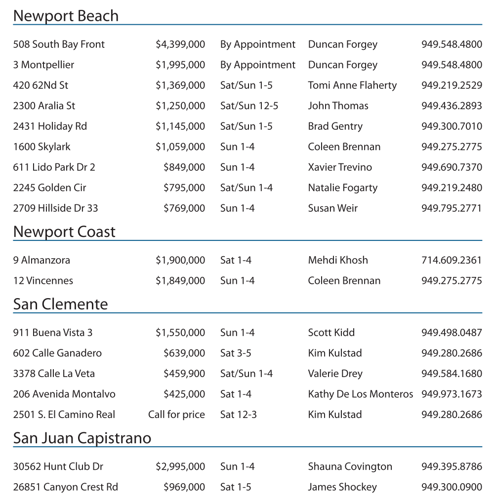 911 Buena Vista 3 $1,550,000 Sun 1-4 Scott Kidd 949.498.0487
