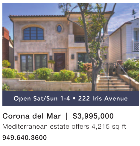 Corona del Mar | $3,995,000 Mediterranean estate offers 4,215 sq ft 949.640.3600