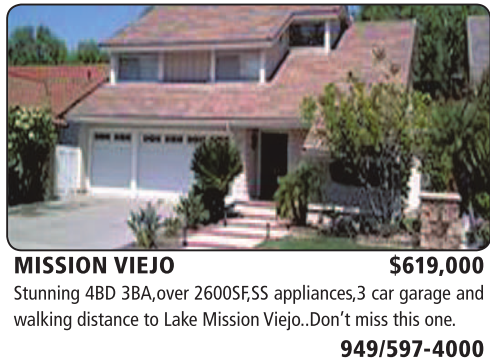 MISSION VIEJO $619,000 Stunning 4BD 3BA,over 2600SF,SS appliances,3 car garage and walking distance to Lake Mission Viejo..Don’t miss this one.