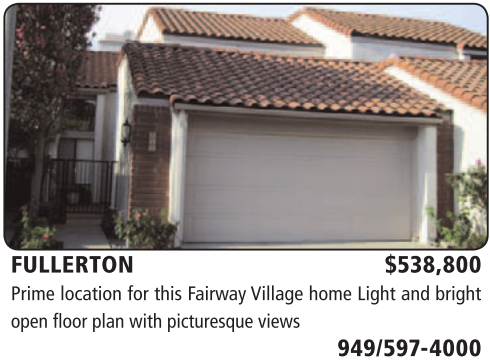 FULLERTON $538,800 Prime location for this Fairway Village home Light and bright open floor plan with picturesque views 949/597-4000