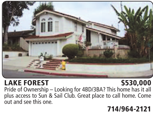 LAKE FOREST $530,000 Pride of Ownership – Looking for 4BD/3BA? This home has it all plus access to Sun & Sail Club. Great place to call home. Come out and see this one.
