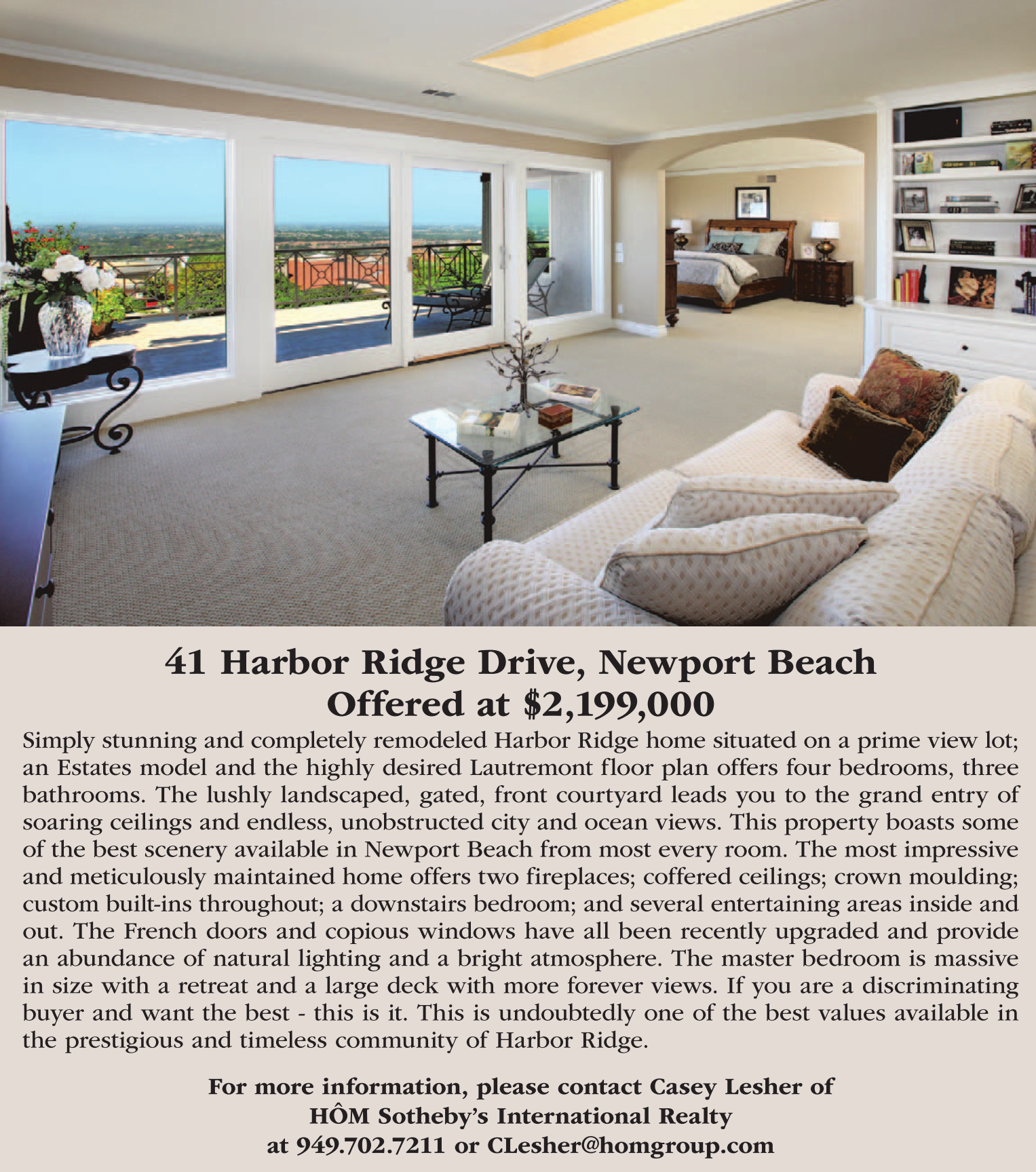 For more information, please contact Casey Lesher of HÔM Sotheby’s International Realty at 949.702.7211 or CLesher@homgroup.com