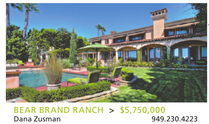 BEAR BRAND RANCH > $5,750,000 Dana Zusman 949.230.4223
