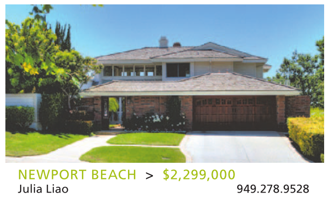 NEWPORT BEACH > $2,299,000 Julia Liao 949.278.9528