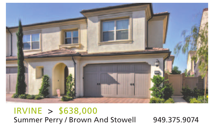IRVINE > $638,000 Summer Perry / Brown And Stowell 949.375.9074