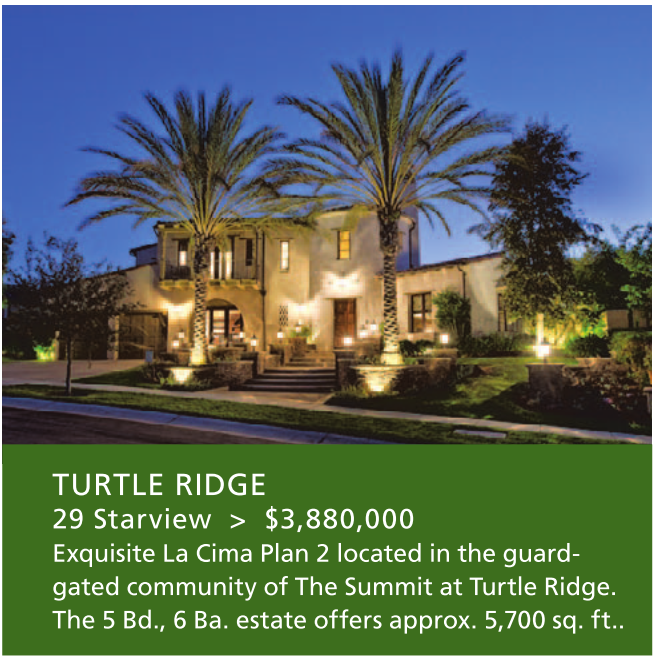 TURTLE RIDGE 29 Starview > $3,880,000 Exquisite La Cima Plan 2 located in the guardgated community of The Summit at Turtle Ridge. The 5 Bd., 6 Ba. estate offers approx. 5,700 sq. ft..