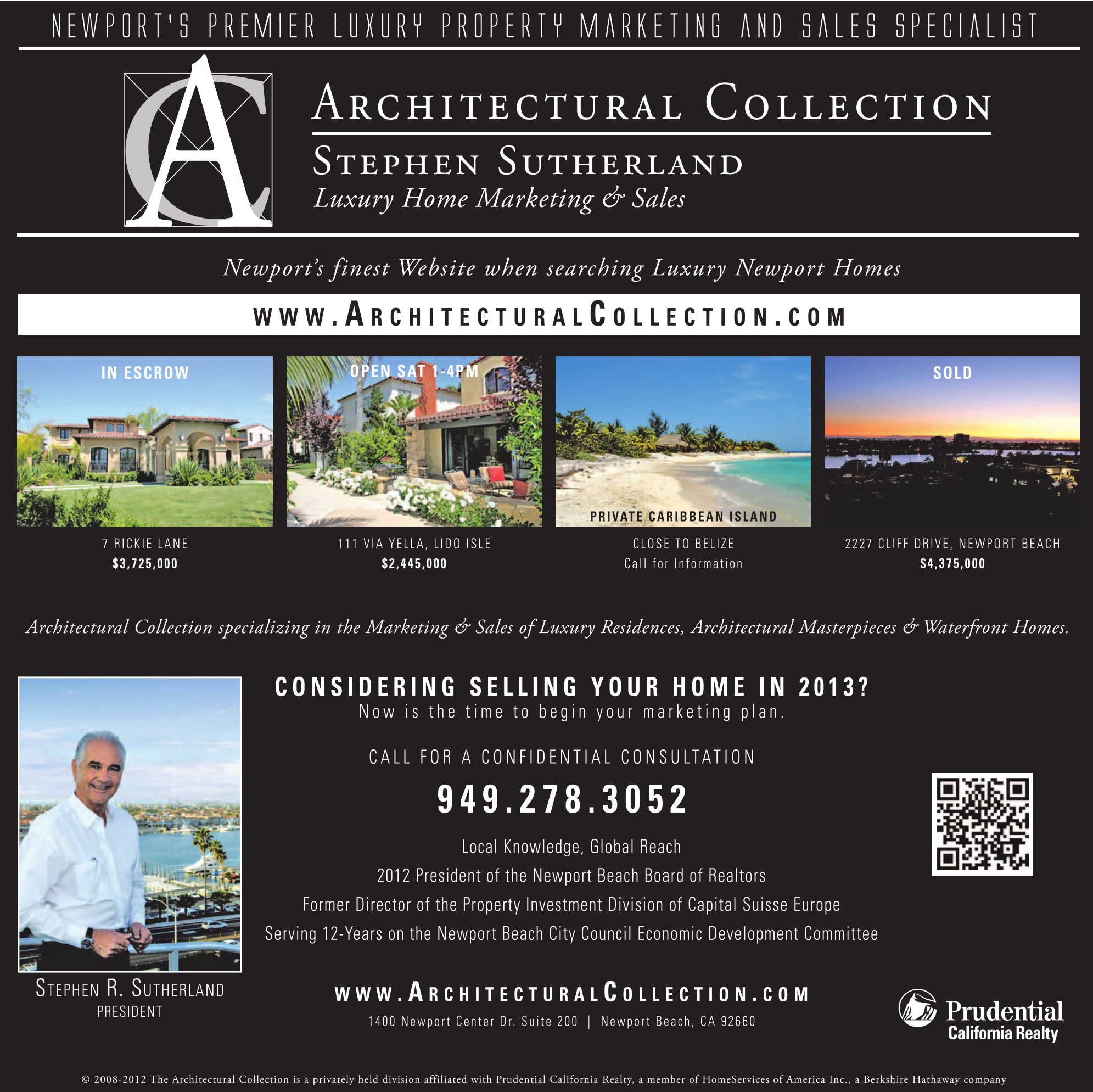 Local Knowledge, Global Reach 2012 President of the Newport Beach Board of Realtors Former Director of the Property Investment Division of Capital Suisse Europe Serving 12-Years on the Newport Beach City Council Economic Development Committee