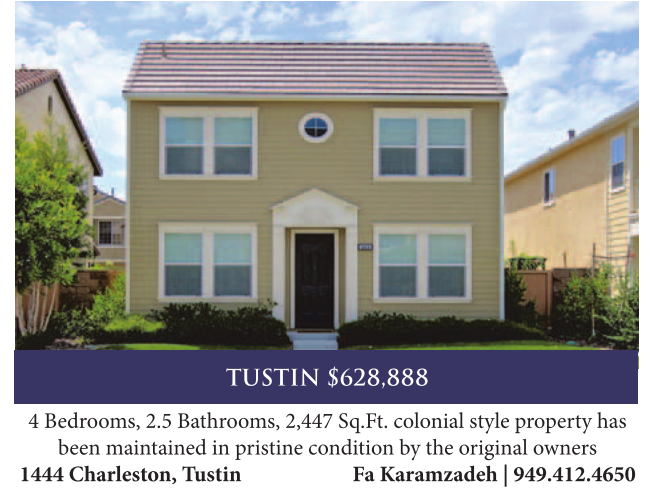 4 Bedrooms, 2.5 Bathrooms, 2,447 Sq.Ft. colonial style property has been maintained in pristine condition by the original owners 1444 Charleston, Tustin Fa Karamzadeh | 949.412.4650