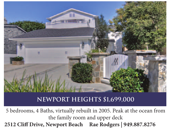 5 bedrooms, 4 Baths, virtually rebuilt in 2005. Peak at the ocean from the family room and upper deck 2512 Cliff Drive, Newport Beach Rae Rodgers | 949.887.8276