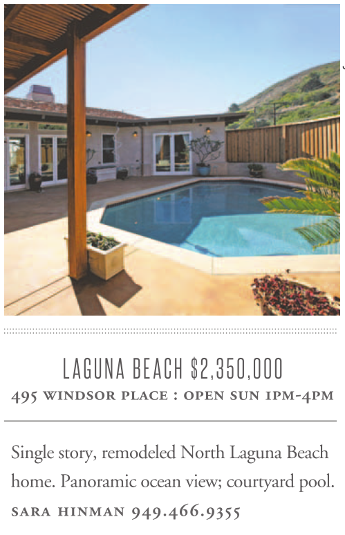Single story, remodeled North Laguna Beach home. Panoramic ocean view; courtyard pool. sara hinman 949.466.9355