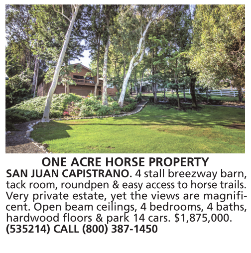 ONE ACRE HORSE PROPERTY SAN JUAN CAPISTRANO. 4 stall breezway barn,
