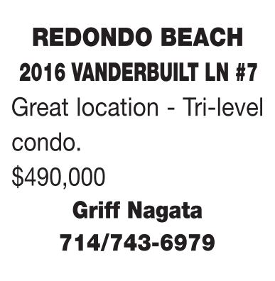 REDONDO BEACH 2016 VANDERBUILT LN #7 Great location - Tri-level condo. $490,000