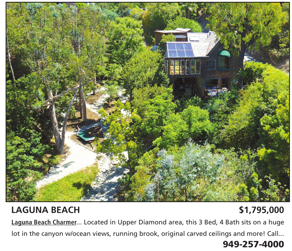 Laguna Beach Charmer... Located in Upper Diamond area, this 3 Bed, 4 Bath sits on a huge lot in the canyon w/ocean views, running brook, original carved ceilings and more! Call...