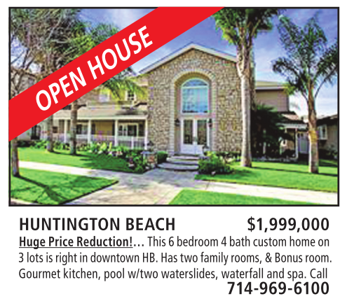 HUNTINGTON BEACH $1,999,000 Huge Price Reduction!… This 6 bedroom 4 bath custom home on 3 lots is right in downtown HB. Has two family rooms, & Bonus room.