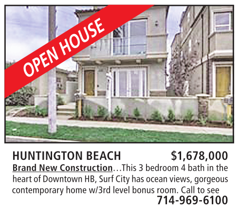HUNTINGTON BEACH $1,678,000 Brand New Construction…This 3 bedroom 4 bath in the heart of Downtown HB, Surf City has ocean views, gorgeous contemporary home w/3rd level bonus room. Call to see 714-969-6100