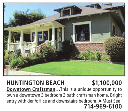HUNTINGTON BEACH $1,100,000 Downtown Craftsman…This is a unique opportunity to own a downtown 3 bedroom 3 bath craftsman home. Bright entry with den/office and downstairs bedroom. A Must See!