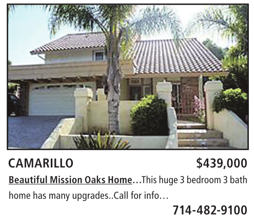 CAMARILLO $439,000 Beautiful Mission Oaks Home…This huge 3 bedroom 3 bath home has many upgrades..Call for info… 714-482-9100