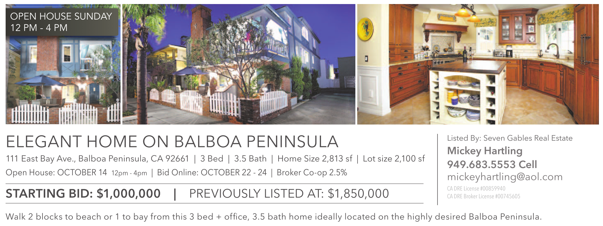 111 East Bay Ave., Balboa Peninsula, CA 92661 | 3 Bed | 3.5 Bath | Home Size 2,813 sf | Lot size 2,100 sf