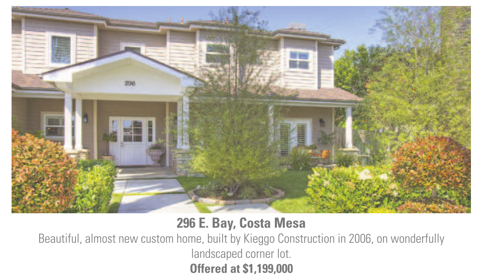 296 E. Bay, Costa Mesa Beautiful, almost new custom home, built by Kieggo Construction in 2006, on wonderfully landscaped corner lot.