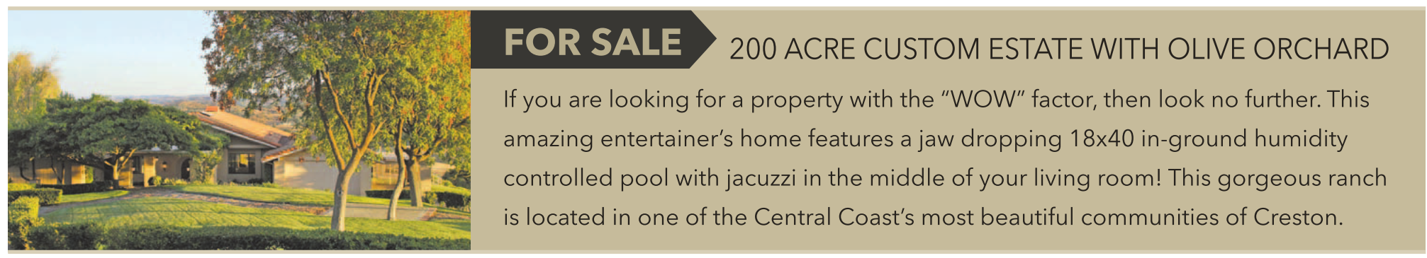 200 ACRE CUSTOM ESTATE WITH OLIVE ORCHARD