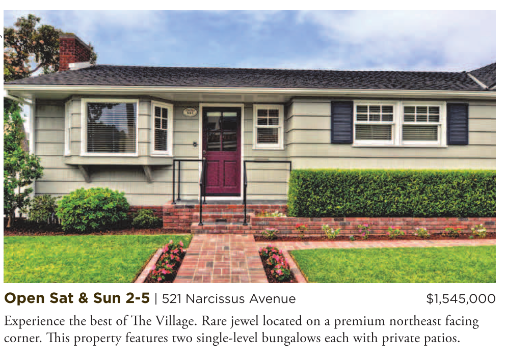 Open Sat & Sun 2-5 | 521 Narcissus Avenue $1,545,000