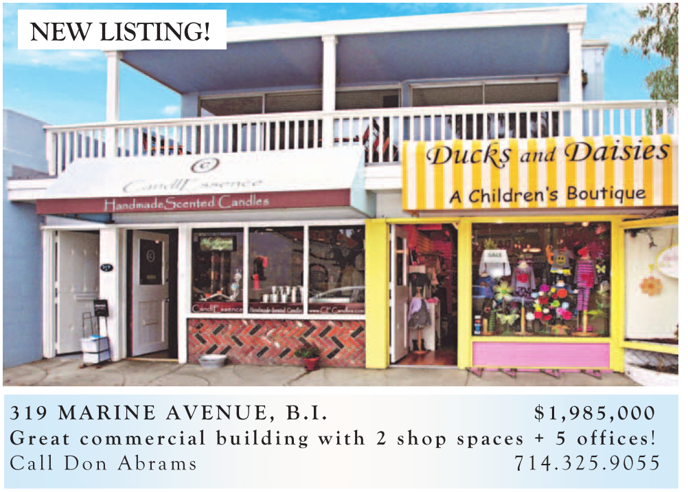 319 MARINE AVENUE, B.I. $1,985,000 Great commercial building with 2 shop spaces + 5 offices! Call Don Abrams 714.325.9055