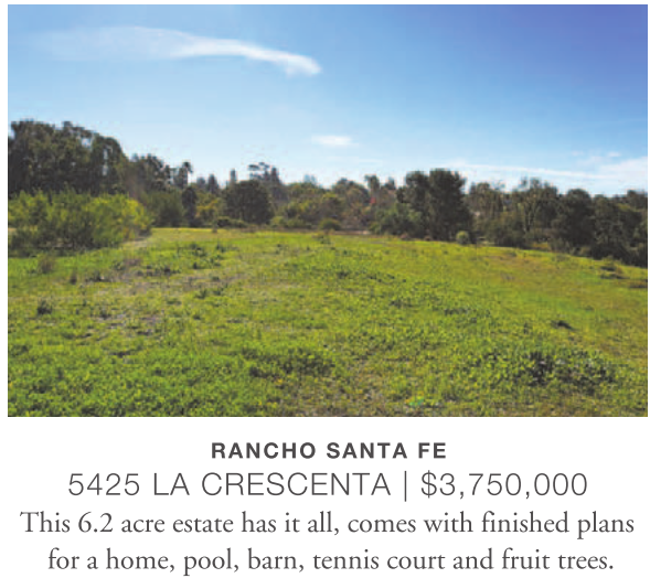 5425 LA CRESCENTA | $3,750,000 This 6.2 acre estate has it all, comes with finished plans for a home, pool, barn, tennis court and fruit trees.