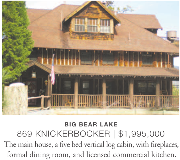 869 KNICKERBOCKER | $1,995,000 The main house, a five bed vertical log cabin, with fireplaces, formal dining room, and licensed commercial kitchen.