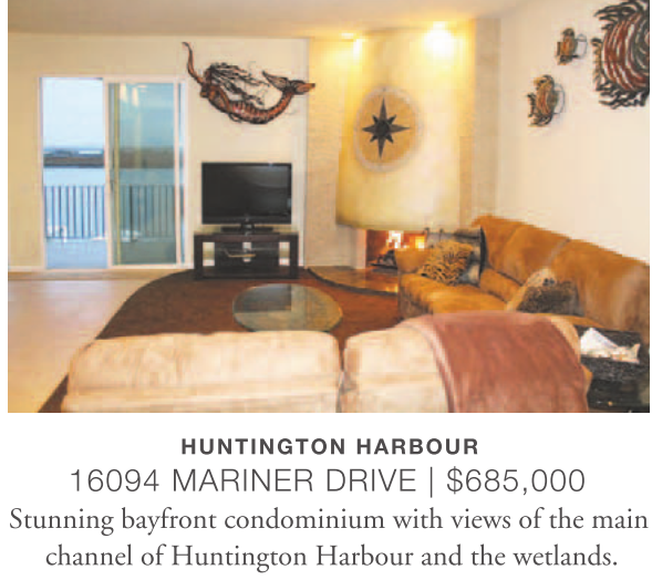 16094 MARINER DRIVE | $685,000 Stunning bayfront condominium with views of the main channel of Huntington Harbour and the wetlands.