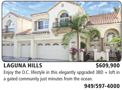 LAGUNA HILLS $609,900 Enjoy the O.C. lifestyle in this elegantly upgraded 3BD + loft in a gated community just minutes from the ocean.