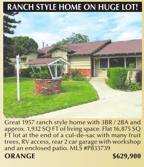 Great 1957 ranch style home with 3BR / 2BA and approx. 1,932 SQ FT of living space. Flat 16,875 SQ FT lot at the end of a cul-de-sac with many fruit trees, RV access, rear 2 car garage with workshop and an enclosed patio. MLS #P833739 ORANGE $629,900