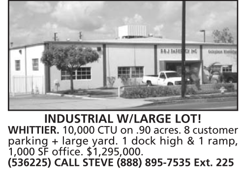 parking + large yard. 1 dock high & 1 ramp, 1,000 SF office. $1,295,000. (536225) CALL STEVE (888) 895-7535 Ext. 225