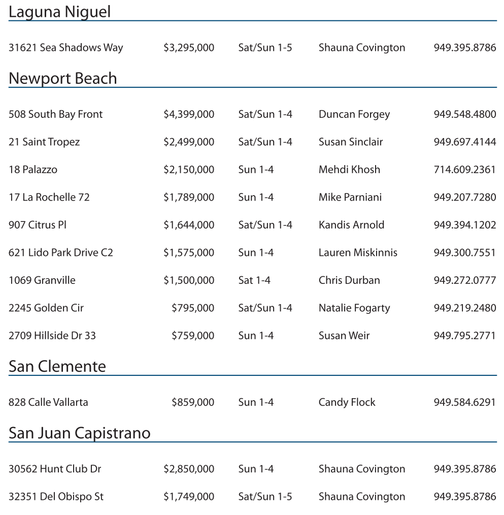 32351 Del Obispo St $1,749,000 Sat/Sun 1-5 Shauna Covington 949.395.8786