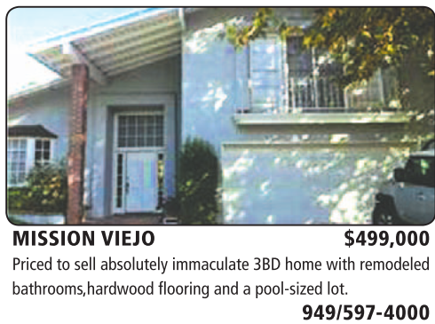 MISSION VIEJO $499,000 Priced to sell absolutely immaculate 3BD home with remodeled bathrooms,hardwood flooring and a pool-sized lot .