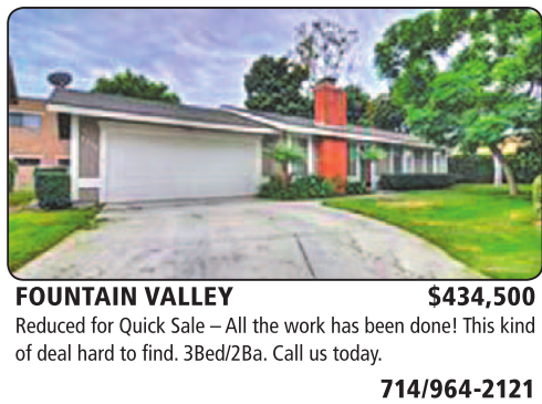 FOUNTAIN VALLEY $434,500 Reduced for Quick Sale – All the work has been done! This kind of deal hard to find. 3Bed/2Ba. Call us today.