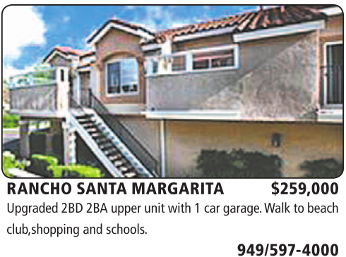 RANCHO SANTA MARGARITA $259,000 Upgraded 2BD 2BA upper unit with 1 car garage. Walk to beach club,shopping and schools.