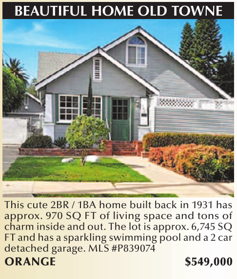 BEAUTIFUL HOME OLD TOWNE This cute 2BR / 1BA home built back in 1931 has approx. 970 SQ FT of living space and tons of charm inside and out. The lot is approx. 6,745 SQ FT and has a sparkling swimming pool and a 2 car detached garage. MLS #P839074 ORANGE $549,000