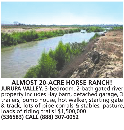 & track, lots of pipe corrals & stables, pasture, loads of riding trails! $1,500,000 (536583) CALL (888) 307-0052