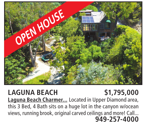 LAGUNA BEACH $1,795,000 Laguna Beach Charmer... Located in Upper Diamond area, this 3 Bed, 4 Bath sits on a huge lot in the canyon w/ocean views, running brook, original carved ceilings and more! Call...