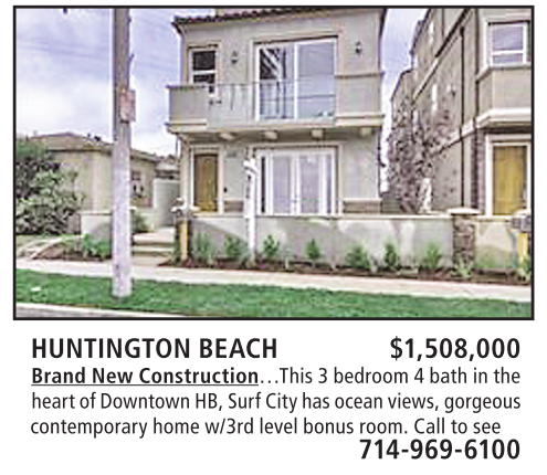HUNTINGTON BEACH $1,508,000 Brand New Construction…This 3 bedroom 4 bath in the heart of Downtown HB, Surf City has ocean views, gorgeous contemporary home w/3rd level bonus room. Call to see 714-969-6100