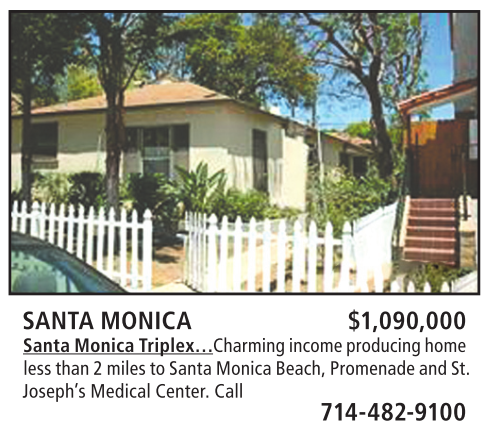 SANTA MONICA $1,090,000 Santa Monica Triplex…Charming income producing home less than 2 miles to Santa Monica Beach, Promenade and St. Joseph’s Medical Center. Call 714-482-9100